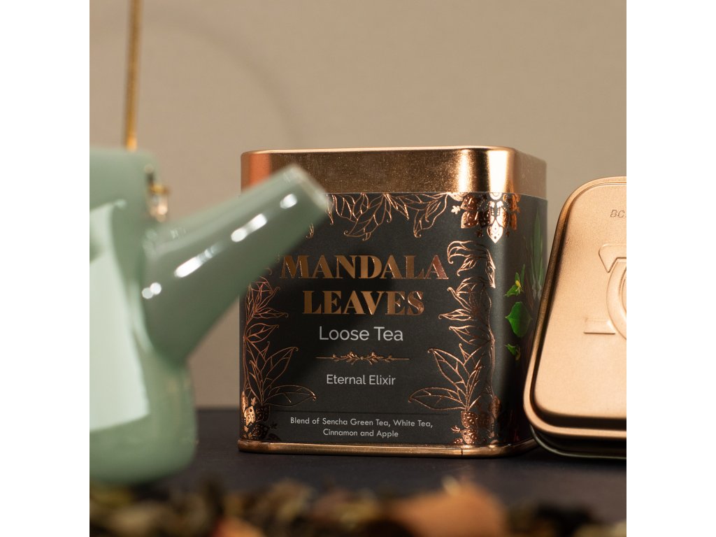 Eternal Elixir je elegantní čajová směs spojující jemnost zeleného a bílého čaje s hřejivými tóny skořice a přirozenou sladkostí jablka. Vzniká tak harmonický nálev, který působí kultivovaně, klidně a vyváženě.